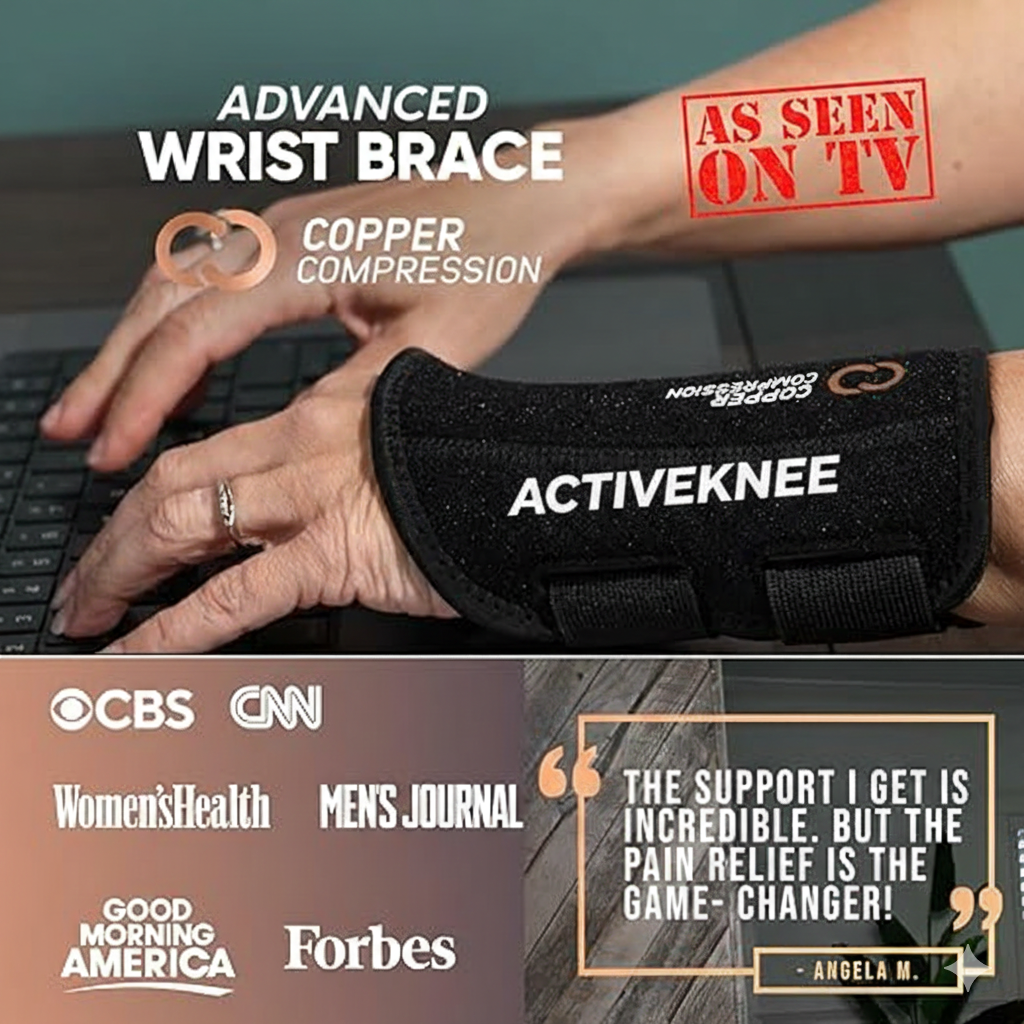 ActiveKnee Copper Wrist Brace Adjustable Support for Carpal Tunnel, Arthritis & Tendinitis